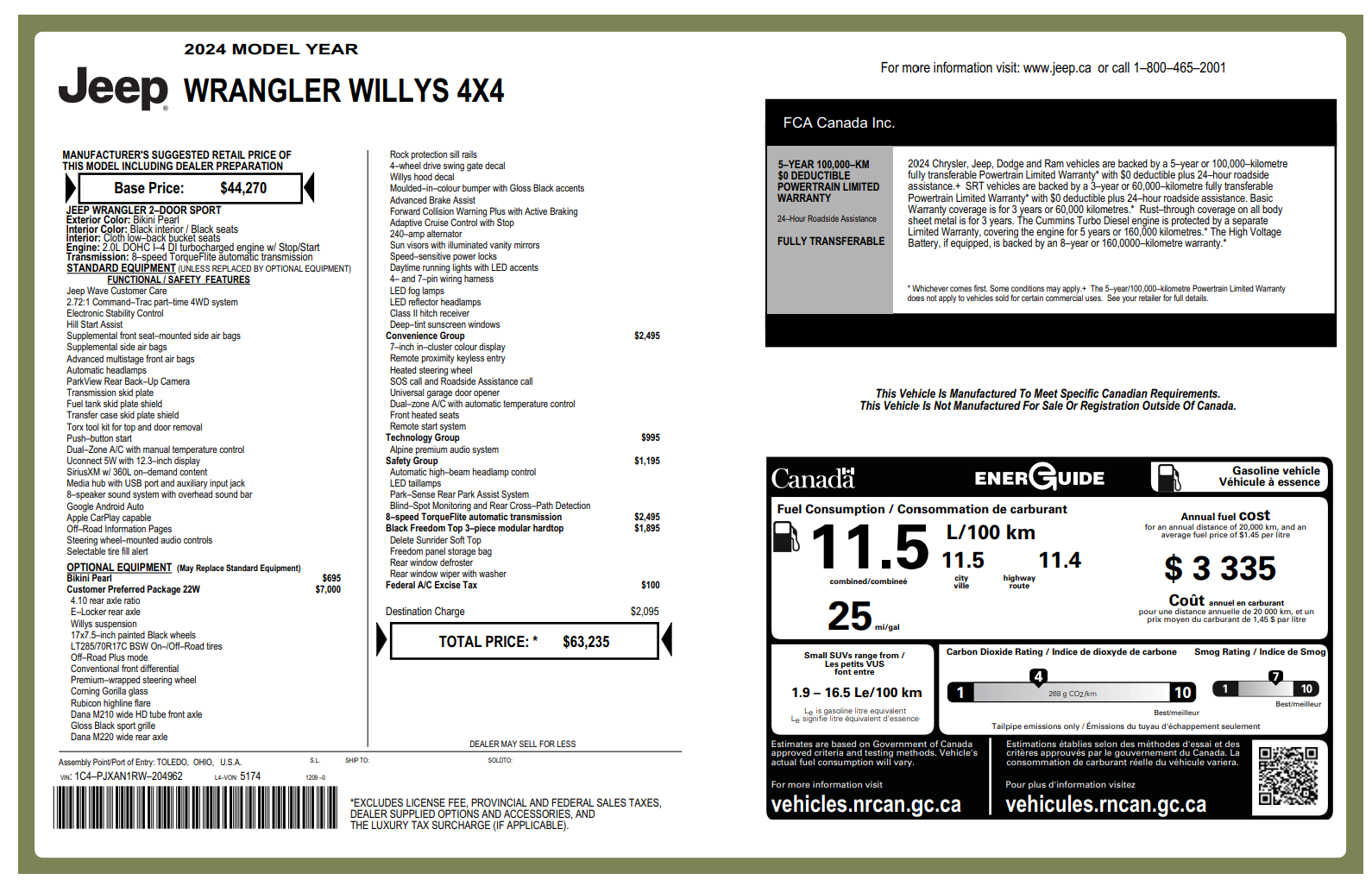 • 22W Willys S Package (LED Headlamps, Electronic Rear Axle Locker, Adaptive Cruise Control, Highline Rubicon Fender Flares)