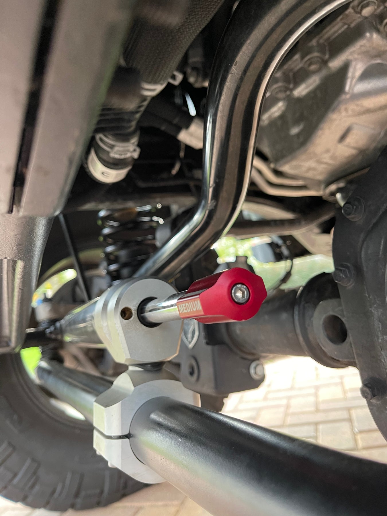Brand new in original packaging TeraFlex #01-02-22-110-158 Falcon Nexus EF 2.2 Steering Stabilizer for 2018+ Jeep Wrangler JL/2020+ Jeep Gladiator JT, 2007-2018 Jeep Wrangler JK with aftermarket 1-5/8" HD Front Tie Rod.