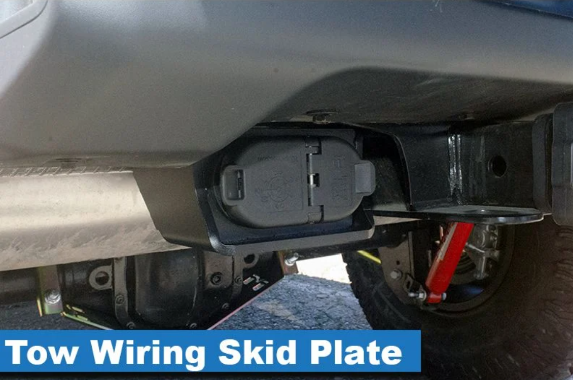 The tow wiring harness is located on the underside of the rear bumper and the factory skid plate is not enough! The MetalCloak Tow Wiring Skid Plate replaces the weak factory mount on your Jeep JL Wrangler.