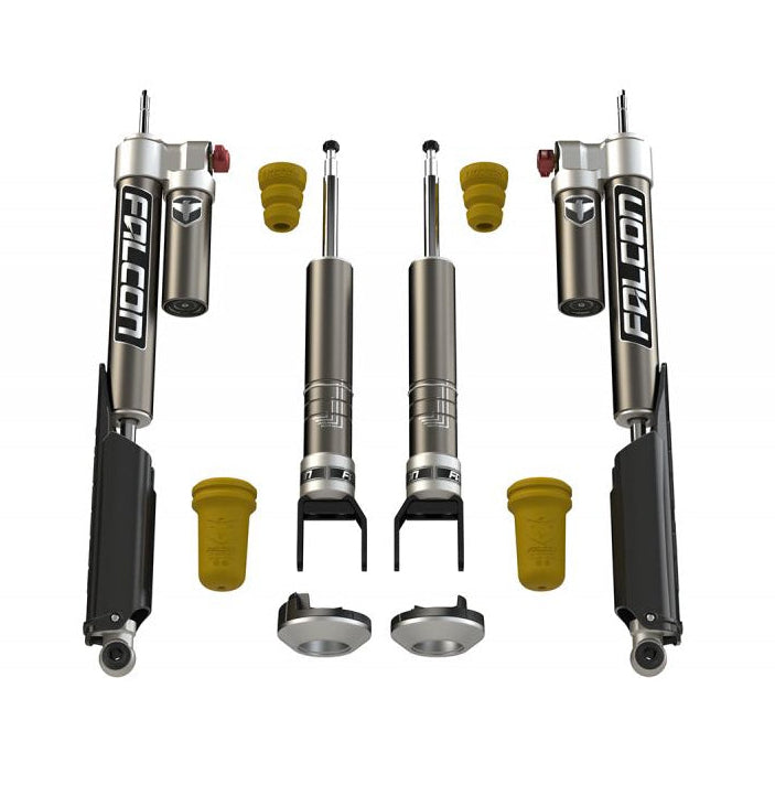 Falcon 2.25/1.25" Sport Tow/Haul Shock Leveling System for 2019+ RAM 1500 DT includes the following: