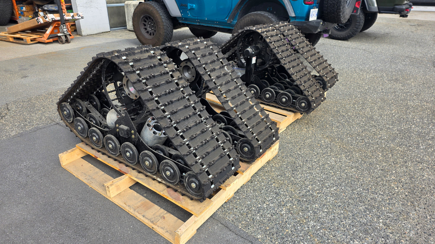 Selling a very lightly used set of 2023 American Track Trucks Dominator XL tracks for Jeeps and 1/2-ton trucks. This track kit has only ever been installed on our very own 2021 RAM 1500 Rebel GT "Swim Shady" shop truck for a single outing - action video available below! The rubber track treads are in like new condition, as they have only been used on a single snow outing, for less than 75km in total.